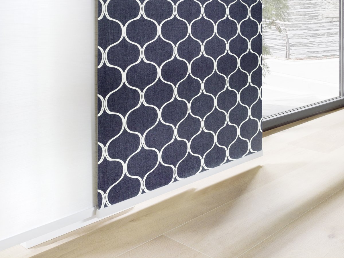 Flächenvorhänge sind die moderne Alternative zum klassischen Vorhang und haben ihren Ursprung in Asien. Glatte Stoffbahnen, so genannte Paneele, werden mit Hilfe von Schiebesystemen, auch als Paneelwagen bezeichnet, in einer Schiene geführt. Sie lassen sich flexibel seitlich verschieben, hintereinander positionieren und können bei Bedarf die ganze oder nur Teile der Fensterfläche bedecken. Diese flächige Licht- und Sichtregulierung ist wie geschaffen für große Fensterfronten und Glasflächen in modernen Wohnräumen und Büros. Flächenvorhänge lassen sich auch als Raumteiler einsetzen.