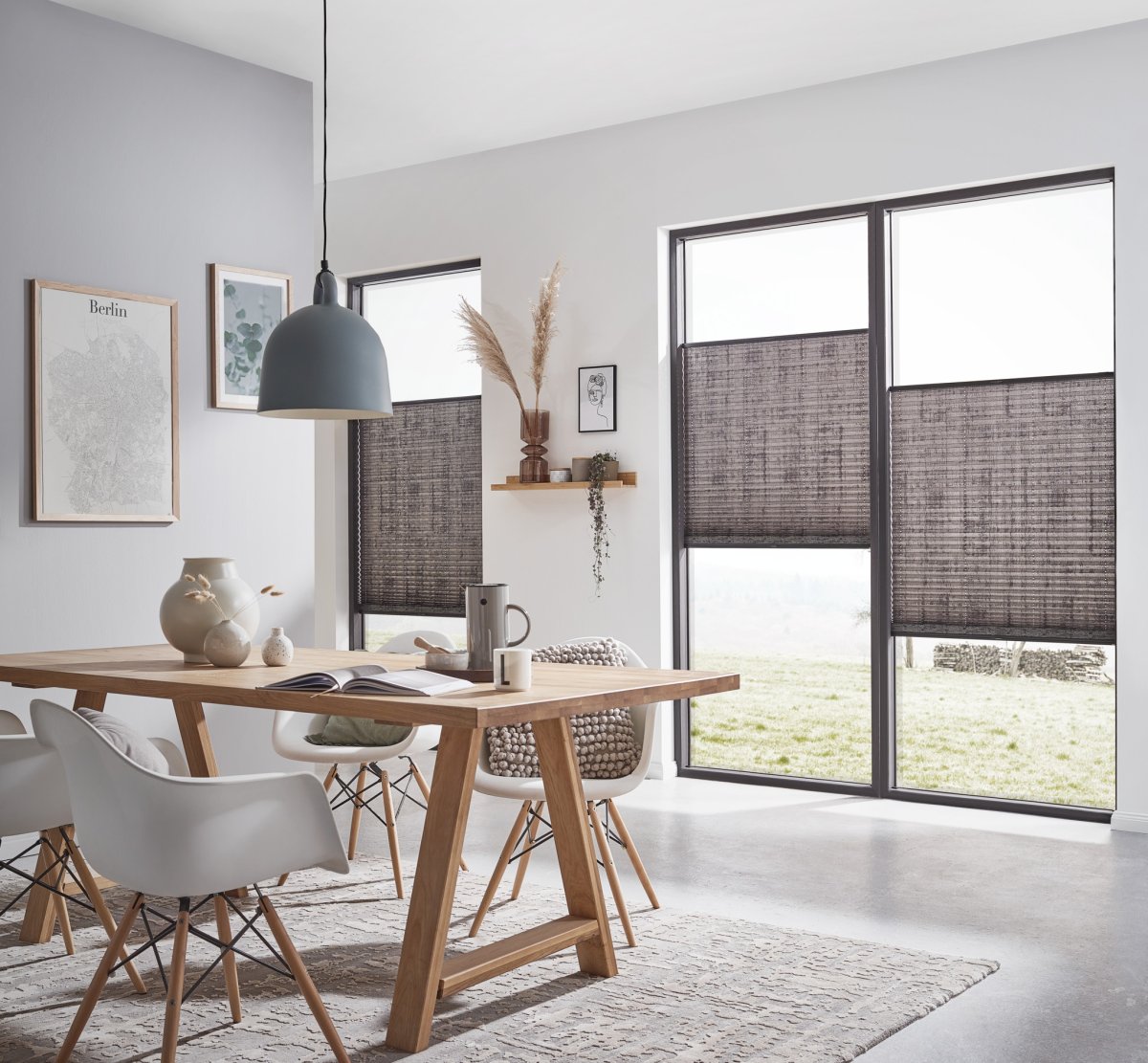 Das Wabenplissee verdankt seinen Namen der speziellen Wabenstruktur. Diese ergibt sich aus zwei hintereinanderliegenden Plisseestoffen, die an der Faltenkante miteinander verbunden sind. Im Inneren der Stoffe bildet sich durch diesen Gewebeaufbau eine isolierende Luftschicht, die sowohl Wärme als auch Kälte abhält. Im Sommer bleibt die Hitze draussen und im Winter die Wärme im Raum. Erleben Sie die Multifunktionalität der Wabenplissees.